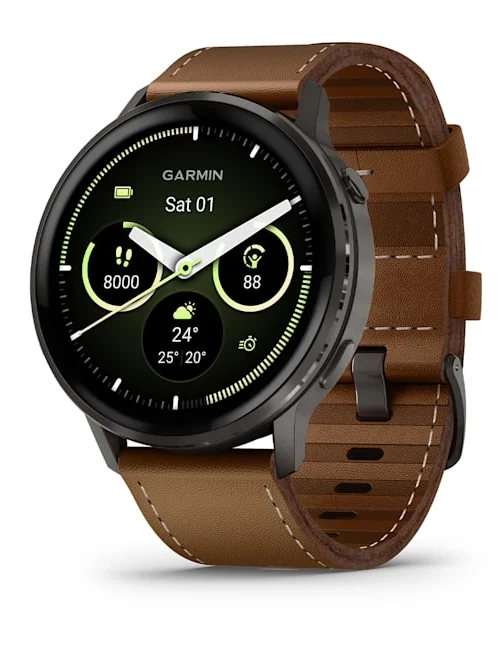 ساعت گارمینVenu4 – 45 mm Slate with Black Silicone Band and Brown Leather Band